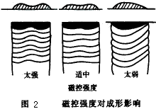1)磁控裝置。隨著焊速的提高,焊接電流也要相應(yīng)增加,則磁收縮力就會(huì)成平方倍的增加,咬邊會(huì)更嚴(yán)重,故必須加大磁控電流,但磁控電流過(guò)大,勵(lì)磁繞組發(fā)熱嚴(yán)重,降低使用壽命。為了在較低磁控電流下,增加磁控效果,應(yīng)采取相應(yīng)措施。如有時(shí)研究采用帶有一定角度可轉(zhuǎn)動(dòng)的磁極端頭和附加磁極極靴等措施,收到了較好的效果。