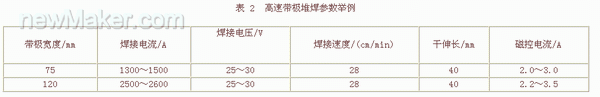 ⑤ 其他一些參數(shù)的推薦值為:帶極伸出長(zhǎng)度為25~35mm,焊劑厚度25~35mm,焊道搭接量5~l0mm。