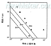 載荷(N) 試驗壽命(循環(huán)周數(shù)) 預測壽命(循環(huán)周數(shù))