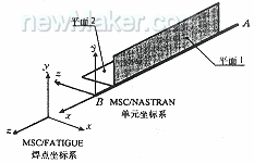方法要求將焊點模擬成為MSC/NASTRAN中的剛性梁單元;經(jīng)這些梁單元傳遞的力和力矩被用來計算結構(名義)應力,這些應力為圍繞焊點熔核和連接板的局部應力;按照S—N總壽命方法,用這些結構應力預估焊點的疲勞壽命。