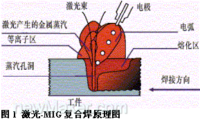 laserHybrid激光復(fù)合焊技術(shù)并不是將激光和MIG電弧焊兩種焊接方法依次作用,而是兩種焊接方法同時(shí)作用于焊接區(qū)。除了電弧向焊接區(qū)輸入能量外,激光也向焊縫金屬輸入熱量。