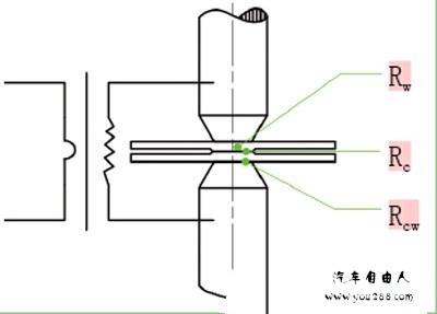 電阻焊是以電阻熱為能源的一種焊接方法,焊接所需電阻熱的產(chǎn)生遵守公式:Q=I2Rt,而電阻R由電極與工件的接觸電阻Rcw、工件電阻Rw和工件與工件的接觸電阻Rc組成:R=2Rcw+Rw+Rc,其中主要為電極與工件的接觸電阻Rcw和工件與工件的接觸電阻Rc,而這兩部分主要取決于焊接壓力。