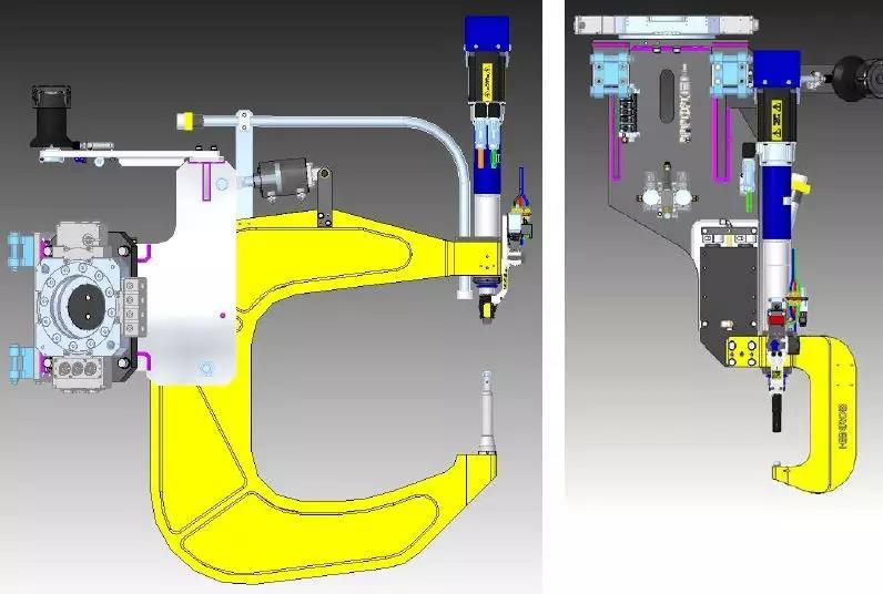 ATI的自適應(yīng)鉚接解決方案:ATI有兩種解決方案來提供對SPR的支持,一種是多個(gè)應(yīng)用的情況下,如機(jī)器人需要抓SPR槍,又需要抓普通的伺服焊接槍,或許有第三種工具比如FDS鉆孔槍等。我們提供的是EN系列的多伺服機(jī)構(gòu)配置。ATI的機(jī)器人工具快換裝置一般可支持6-7個(gè)位置來安裝不同的EN模塊,并可以根據(jù)用戶的需求來創(chuàng)建,同時(shí),支持多種不同的接頭,比如Amphenol,Intercontec等。以后的生產(chǎn)線改造、設(shè)備功能擴(kuò)展上,也非常方便。