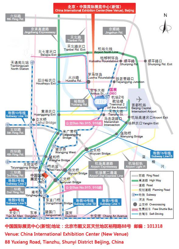 可乘坐地鐵15號(hào)線、公交915、916路,至國(guó)展站下車。